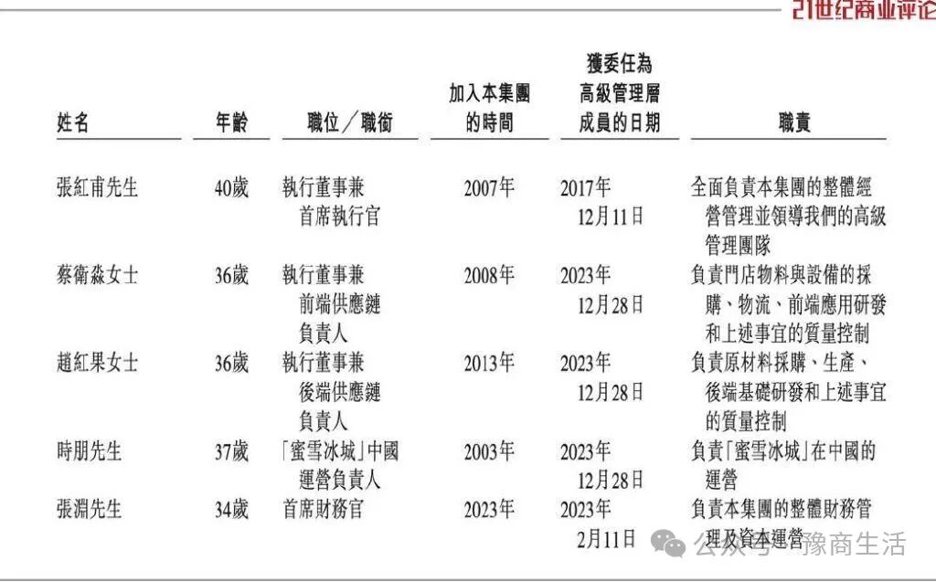 若对照香飘飘“一年卖出3亿多杯,杯子连起来可绕地球一圈”的算法,“雪王”全年能卖约百亿杯,杯子可绕地球超过30圈。 2007年,小八岁的弟弟张红甫从大学退学,加入蜜雪冰城。 正是这一年,两人总结出一套标准化的经验,通过加盟商开始复制,一年开出20家门店。 其后,两兄弟开设中央工厂,自建物流网络,到2020年,其门店规模即突破10000家,成为一家现象级公司。 招股书披露,张红超是公司创始人,任董事长,负责集团的发展战略。 张红甫是联合创始人,担任首席执行官,负责整体经营管理。他带领的高管团队也相当年轻,平均年龄在36岁左右。