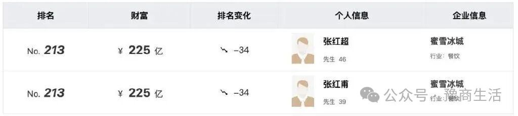 以柠檬为例,2023年蜜雪采购的柠檬总量超过11.5万吨,由巨大采购量加持,采购成本较同行低约20%;用于糖蜜、果蜜的包装瓶,蜜雪自产的成本,则较采购价降低了一半。 据披露,2023年,兄弟俩的体系,在国内创造或支持的就业岗位,高达78.5万个。 雪王崛起 蜜雪冰城的平价基因,来自于张氏兄弟,两人皆是草根出身。 兄长张红超1977年出生于河南商丘,18岁他考上河南财经政法大学,来到郑州。 他非常有生意头脑,20岁时受老家刨冰启发,在郑州的城中村,开了一家名为“寒流刨冰”的小店,用一台自制的刨冰机,开启现制饮品创业。 其后,张红超将店铺改造升级,开发出奶昔、圣代、奶茶等产品,铺子改名“蜜雪冰城”。 为了给门店引流,他推出一款售价1元的蛋筒冰淇淋,大受欢迎;又用新鲜水果制成的冰鲜柠檬水,也成为爆款。 这些产品,迄今依旧热卖。 2024年1-9月,蜜雪冰城出杯量达到71亿杯,招牌的柠檬水卖出11亿杯,冰淇淋出杯量达14亿支。